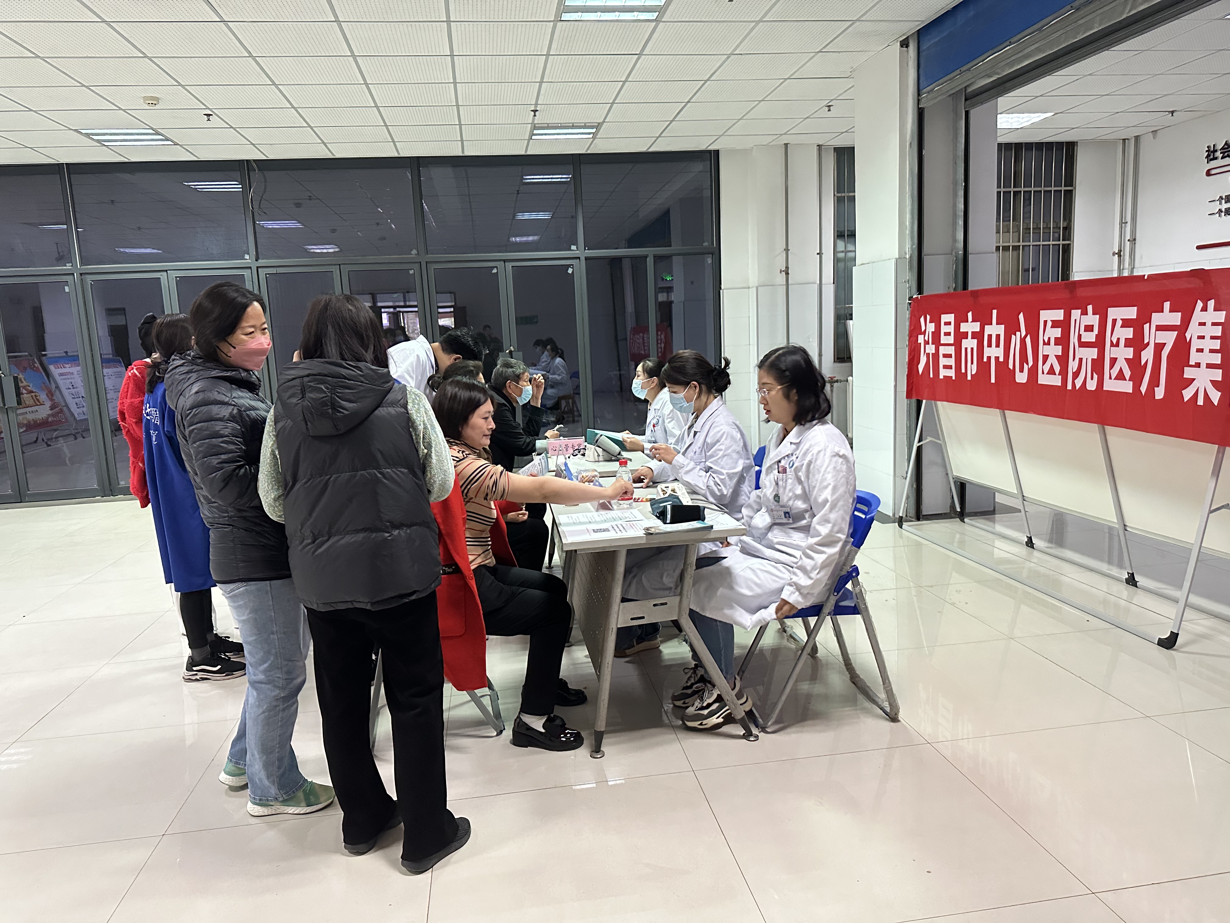 讲座期间,许昌市中心医院医师团队在文科综合楼一楼进行了现场义诊,受到了老师们的热烈欢迎。