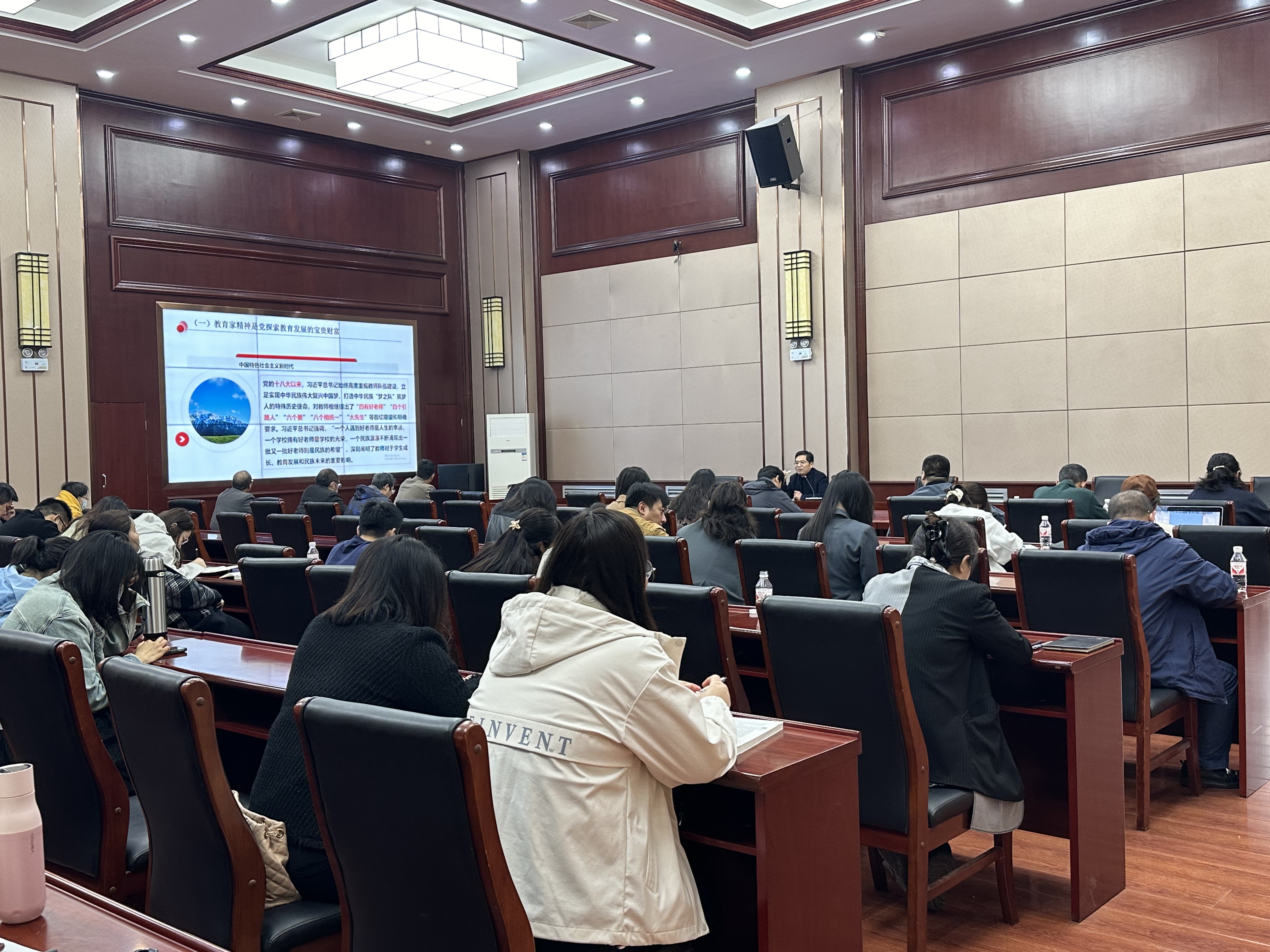 3月29日下午,教师中心举办“院长面对面活动”,活动邀请马克思主义学院院长周耀宏教授作《弘扬教育家精神,争做新时代好老师》专题报告,近100名系(教研室)主任或副主任、新入职教师参加。活动由教师中心副主任张海侠主持。